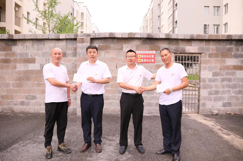 参观考察和纪念活动结束后,党总支副书记杨秀峰、张光流深入板溪疫情隔离点走访慰问困难党员冉红光和抗疫一线党员晏欲晓。