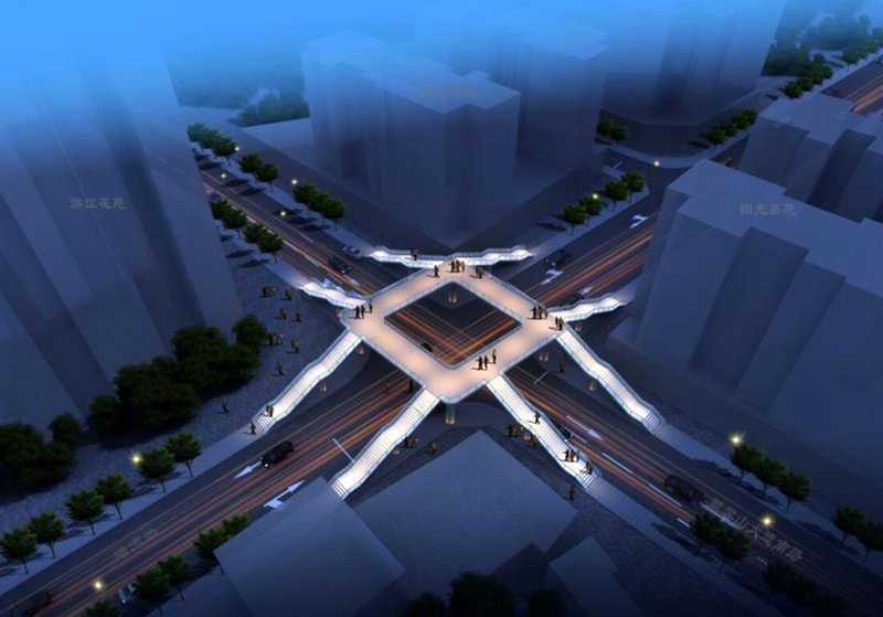 酉阳县过街人行天桥(一期)项目:(1)钟多小学人行天桥采用“菱”形平面布置,天桥主梁宽度4.2m,净宽4.0m;梯道宽2.5m,净宽2.3m;在梯道两级休息平台均设置梯道墩,梯道下设置管理用房;(2)民族小学人行天桥:天桥采用“H”形平面布置,天桥主梁宽度4.2m,净宽4.0m;梯道宽2.6m,净宽2.4m;在梯道两级休息平台均设置梯道墩,梯道下设置管理用房;(3)sunbet申搏小学人行天桥:天桥采用“工字型”天桥全长13.1m,桥面横向全宽3.2m,净宽3.0m;梯道宽2.0m,净宽1.8m,每18级台阶设置休息平台。本工程于2018年10月19日开工建设,2019年10月16日完成全部工程建设。