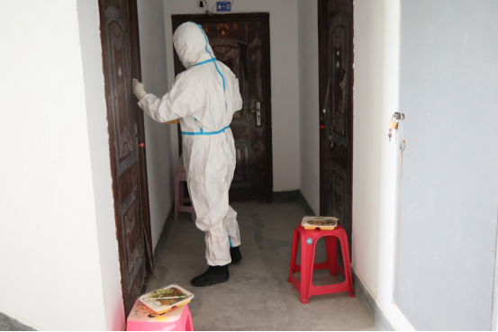 需求量大、时间紧张、人员紧张,平日里看似简单的一日三餐,在这特殊时期成为一场严峻考验。宴欲晓、刘尧等几名工作人员在完成隔离点日常工作的同时,送餐服务成了工作量最大的事情,每餐要按时精准地将餐食送到被隔离人员,成了名副其实的送餐“服务员”。他们中年龄最大的晏欲晓53岁,最小的刘尧26岁,工作岗位不同、年龄不等,但都有着共同的心声——像秒针一样奔跑,送上热乎饭。每人负责一栋楼的餐饮物资配送、垃圾收纳转运、环境卫生清扫、人员管理等工作。每天他们想的最多的就是“每日用餐人数必须准确、所用时间必须最快”。“我是当兵出身,最脏最累的活就交给我吧”,刘尧作为一名退役军人,时刻保持军人本色,他永远都是竭尽全力做好每一项工作,用自己的汗水传递着正能量,无时无刻展示着退役军人的风采。他们不管多脏、多难、多累,始终做到了用微笑和饱满的热情面对工作,为隔离点疫情防控工作提供了坚实的后勤保障。