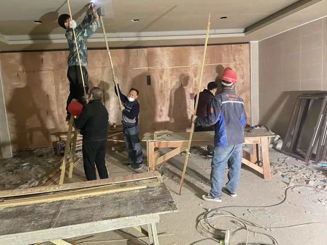 连日来,在临时集中隔离点建设改造现场,专班工作组研究突击方案,主动协调参建单位,现场办公,大家不分昼夜,对公寓进行改造。从上下水工程到电力设施安装、从通讯保通到道路硬化、从房间改造到办公用房装修、从消防设施安装到燃气管道铺设、从污水处理到垃圾收集、从环境整治到卫生清扫等等,制定了科学合理的方案,倒逼时间,挂图作战,严格按照隔离点的建设要求,抓抢进度,力争隔离点能够尽快建设完成并交付使用。