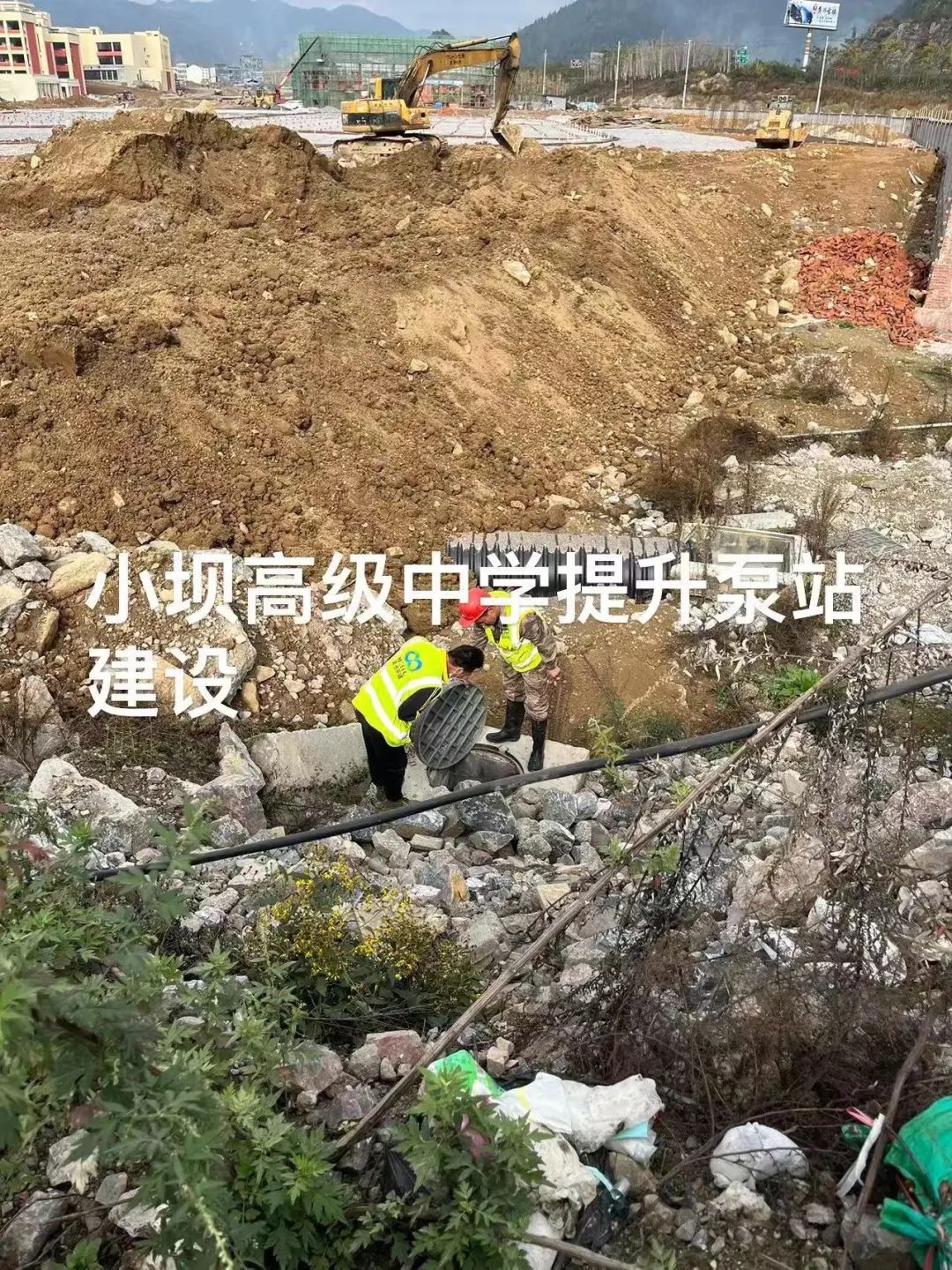 美池环建设公司现场研究废水(污水)提排设施设备安装工作