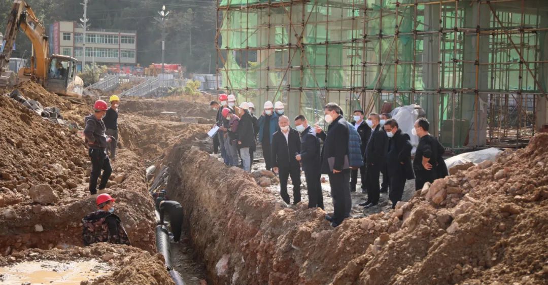 在施工工地,工程车辆、机械设备、施工工人来往穿梭,有条不紊地进行施工作业,所有工作按照5+2、白+黑工作模式,争取5天完工1栋楼投用、10天完工两栋楼投用、15天完工4栋楼投用的目标冲刺,与时间赛跑,全力推进临时隔离点建设,项目建成后将大大提升我县处置突发疫情的应急保障能力。