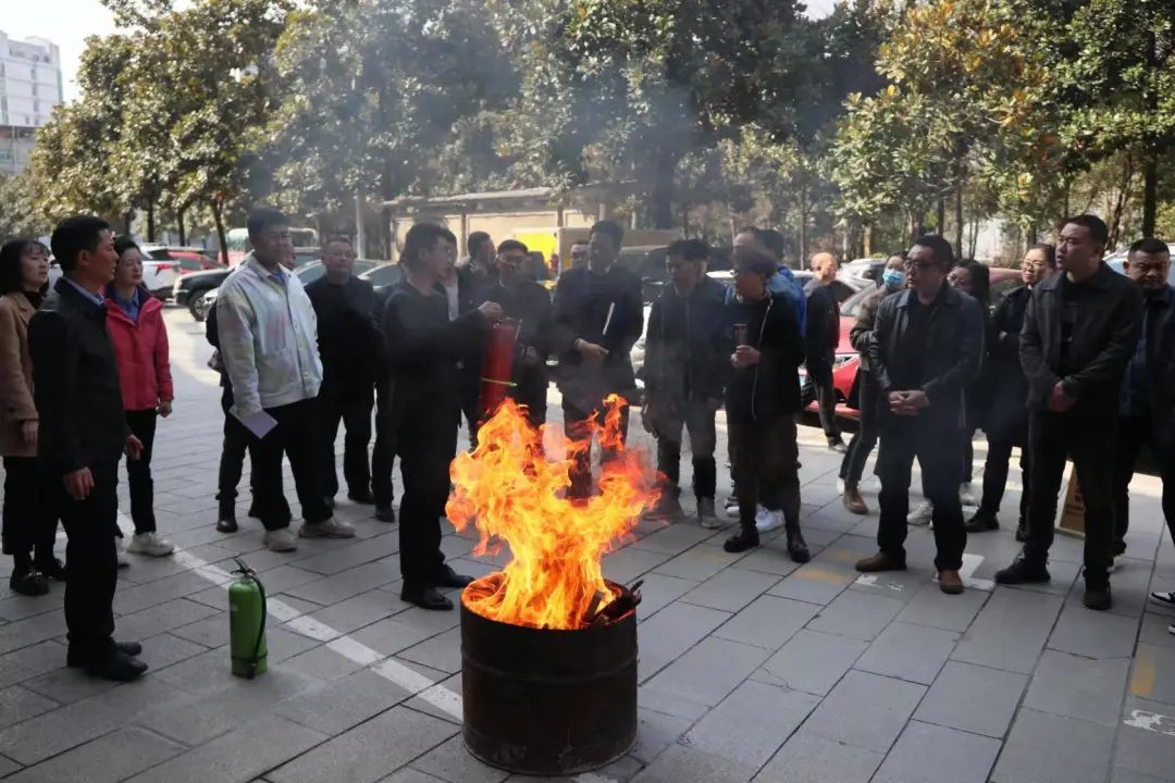 模拟建筑物着火,演练正确逃生方法,模拟楼道着火,演练灭火器使用方法。使全体员工进一步掌握了灭火器的使用及灭火技巧,掌握在火场中正确的逃生方法,有效提升了全员应对突发事件应急处置能力。